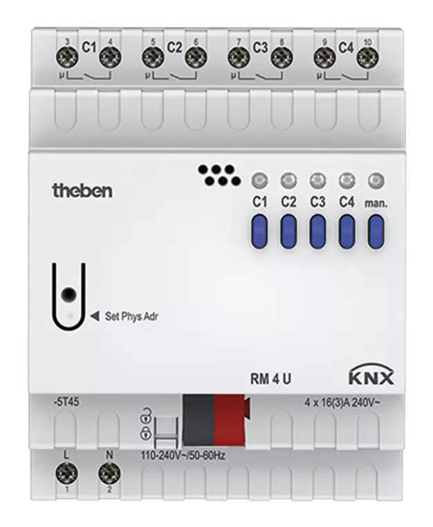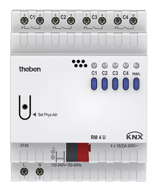 Theben 4940223, 4-way switching actuator FIX1 RM 4 U KNX, 4003468490976