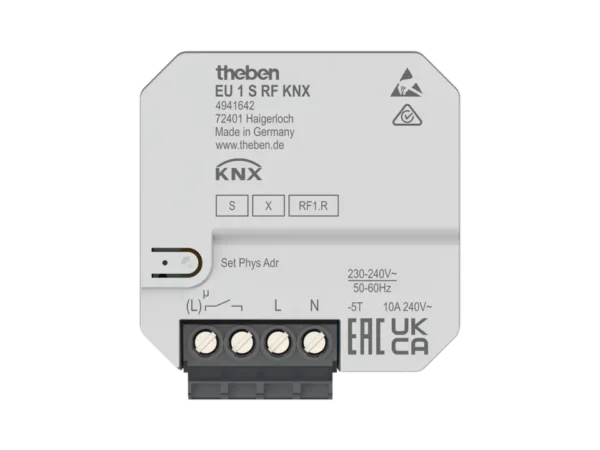 Theben 4941642, 1-way flush-mounted wireless actuator for electric heating 10 A, KNX RF, Data Secure EU 1 S RF KNX, 4003468491867