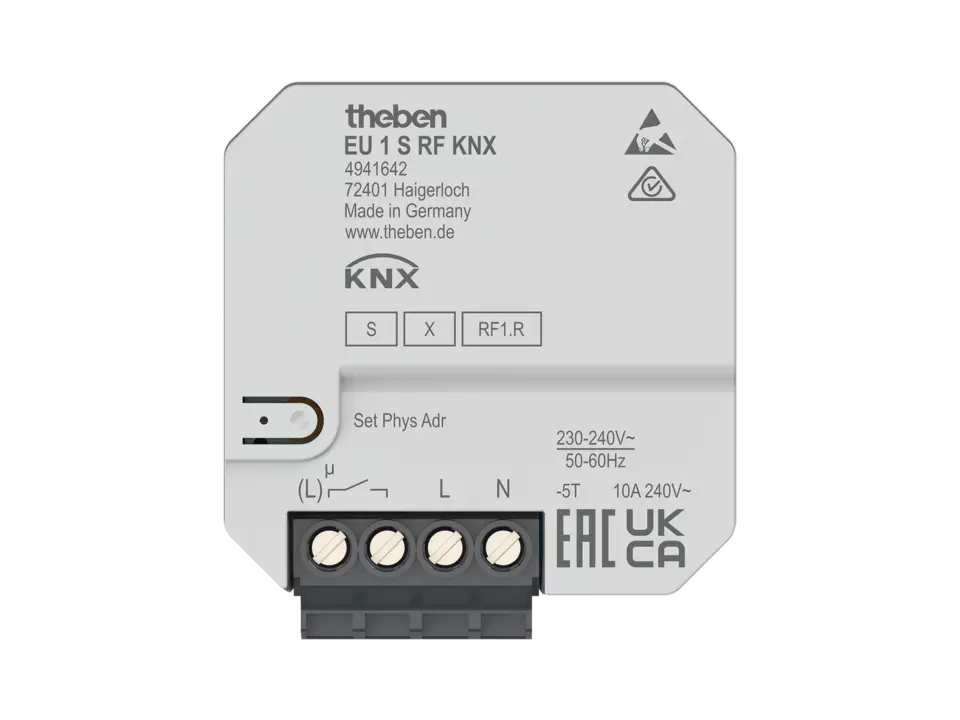 Theben 1-way flush-mounted wireless actuator for electric heating 10 A, KNX RF, Data Secure EU 1 S RF KNX