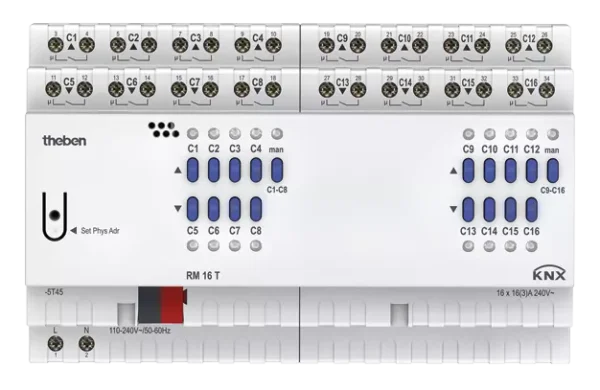Theben 4940205, 16-way switching or 8-way blind actuator FIX2 RM 16 T KNX, 4003468490846