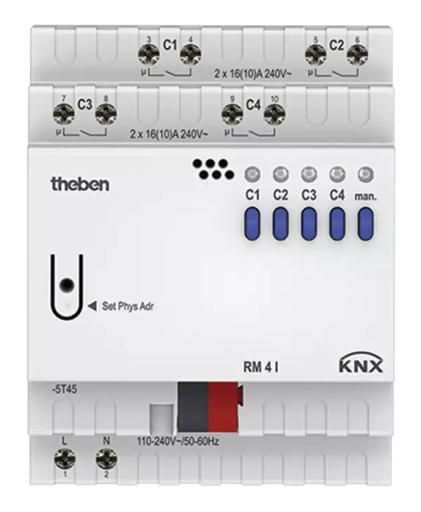 Theben 4940210, 4-way C load switching actuator FIX1 RM 4 I KNX, 4003468490297