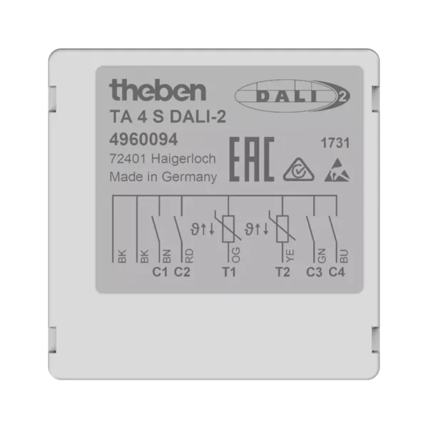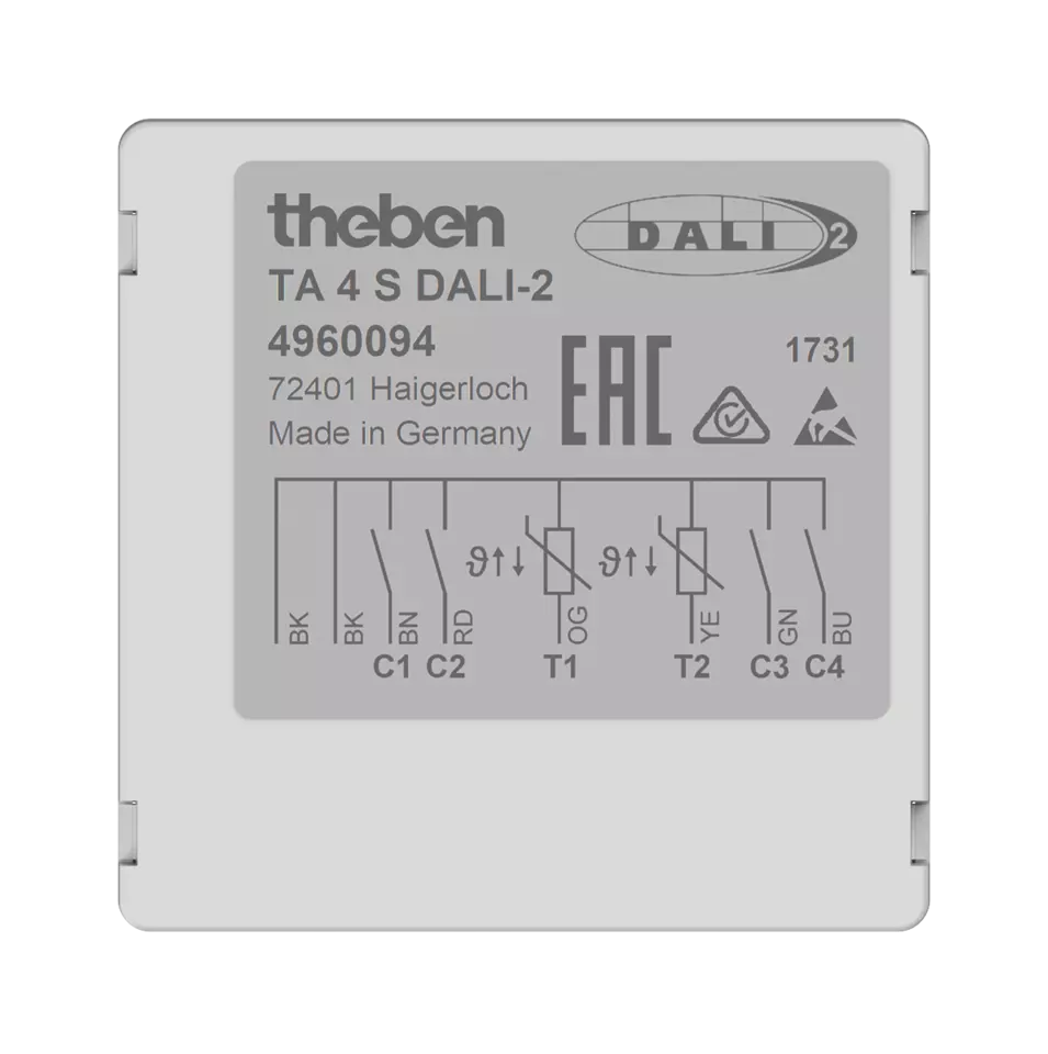 Theben 4960094, 4-way DALI-2 push-button interface flush-mounted TA 4 S DALI-2, 4003468491584