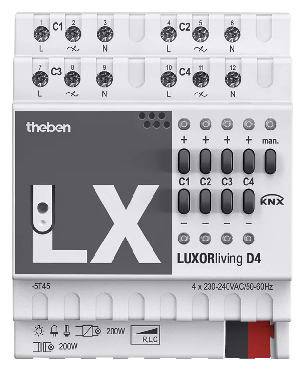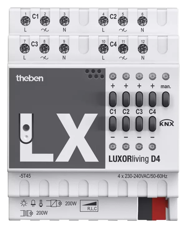 Theben 4800475, 4-way universal dimmer actuator LUXORliving D4, 4003468480052
