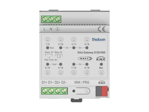 Theben Interface between the DALI and the KNX system, DALI-2 certified DALI-Gateway S128 KNX