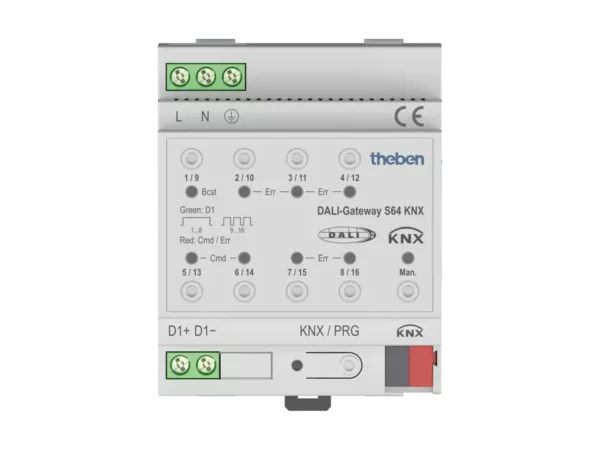 Theben Interface between the DALI and the KNX system, DALI-2 certified DALI-Gateway S64 KNX