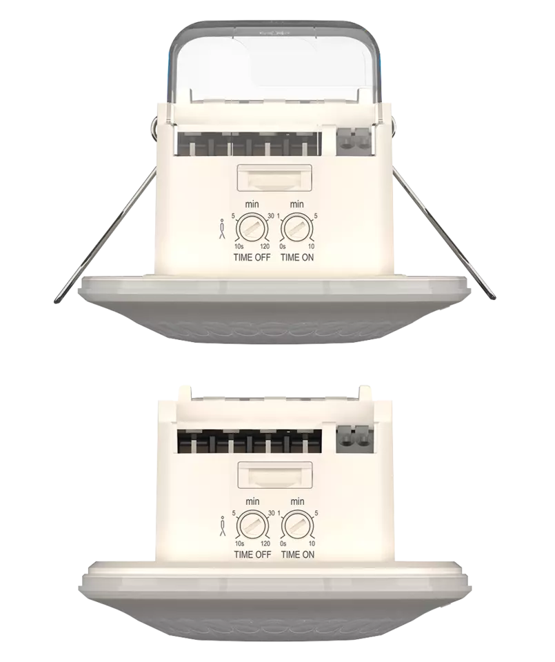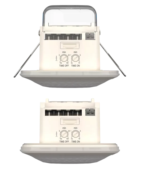 Theben Passive infrared presence detector, ceiling installation as supplied or flush-mounting by means of removable springs/protection cap and enclosed mounting frame LUXA 103 S360-101-12 DE-UP WH